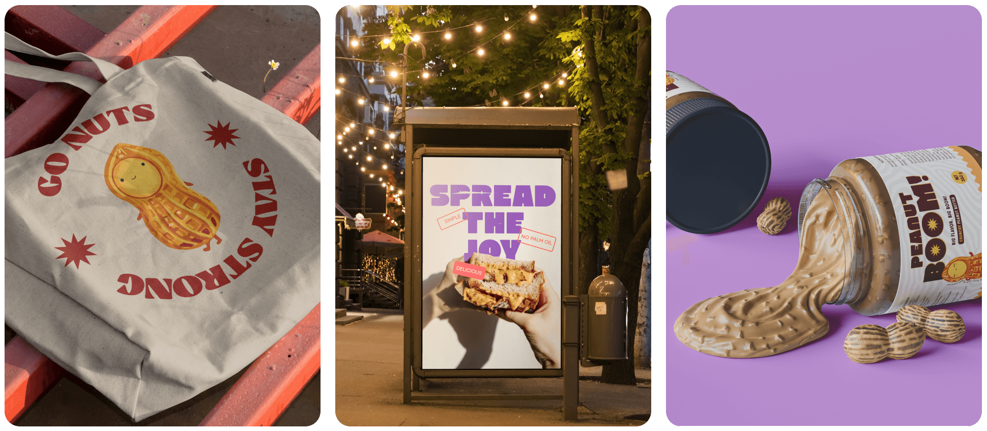We brought the story of this peanut butter to the forefront with a smiling peanut mascot, full of personality, who embodies both the natural goodness of the product and the spark of delight it brings.